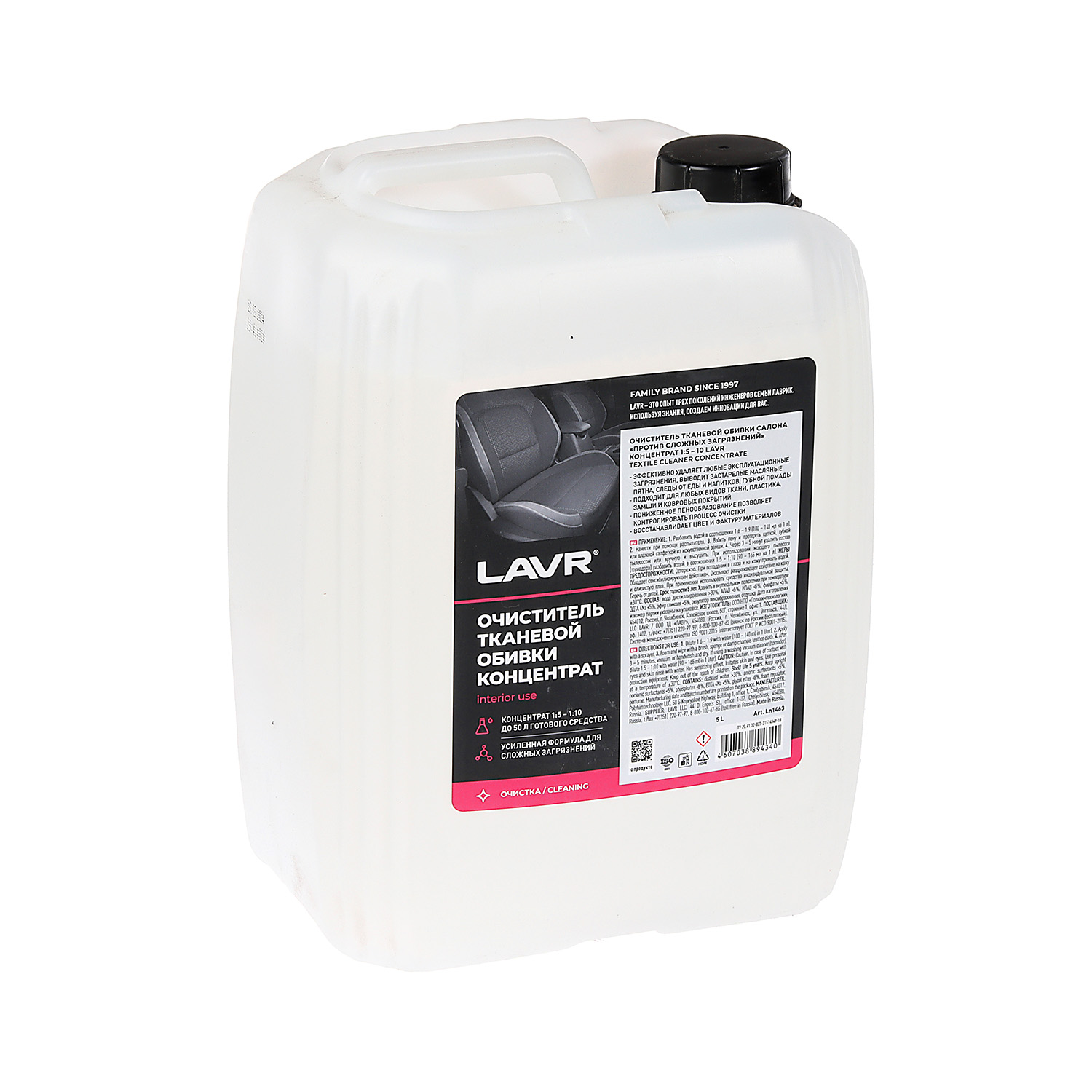 Очиститель тканевой обивки LAVR салона концентрат 1:5 - 10, 5 л/Ln1463	*1