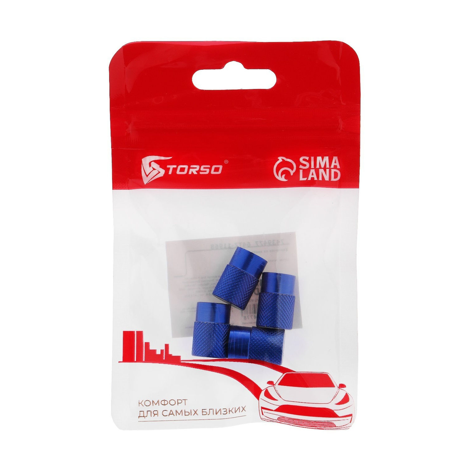 Колпачок на вентиль TORSO, синий, набор 4 шт 7439477