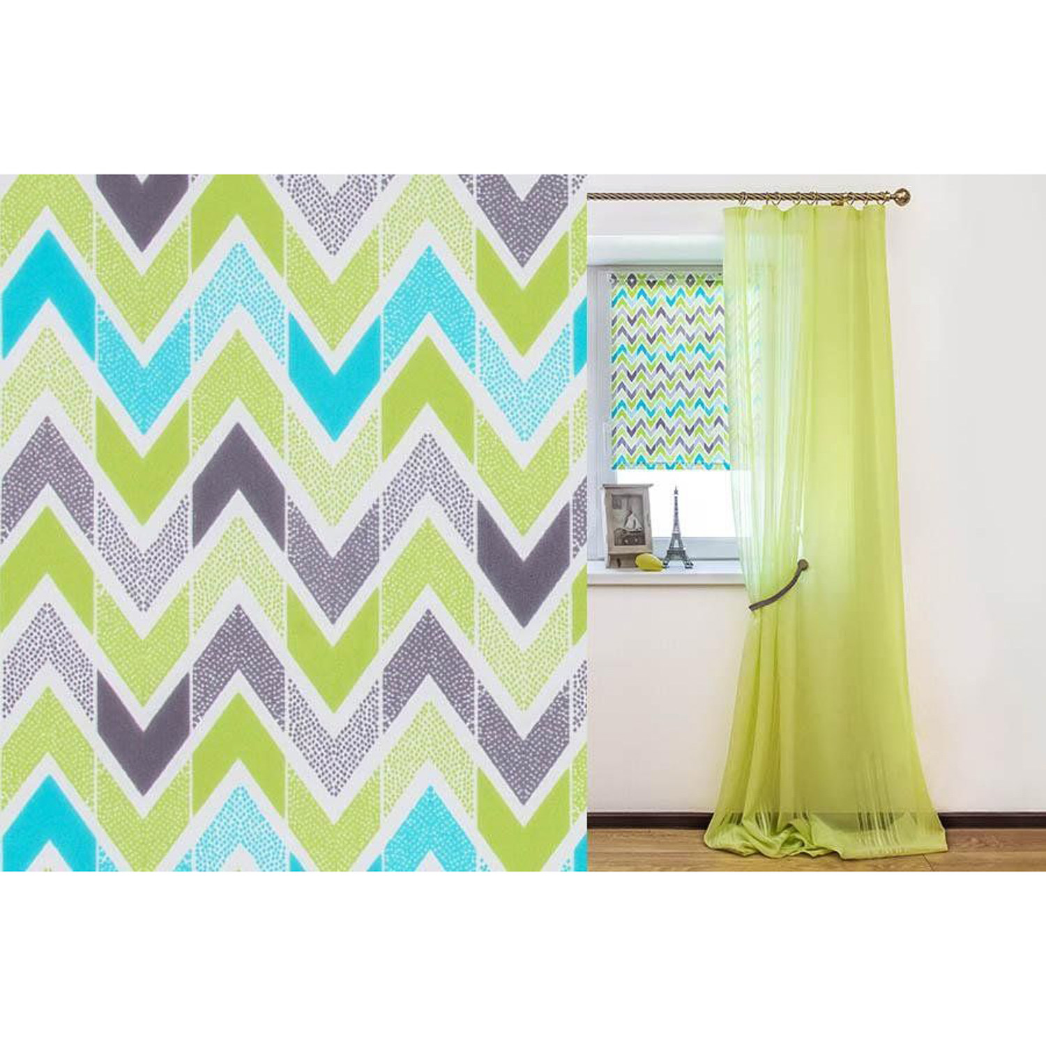 Ролета, труба d17 мм, цепочный механизм управления, отвесная планка с магнитами, металлические пластины - фиксаторы шторы, монтажные площадки, кронштейны