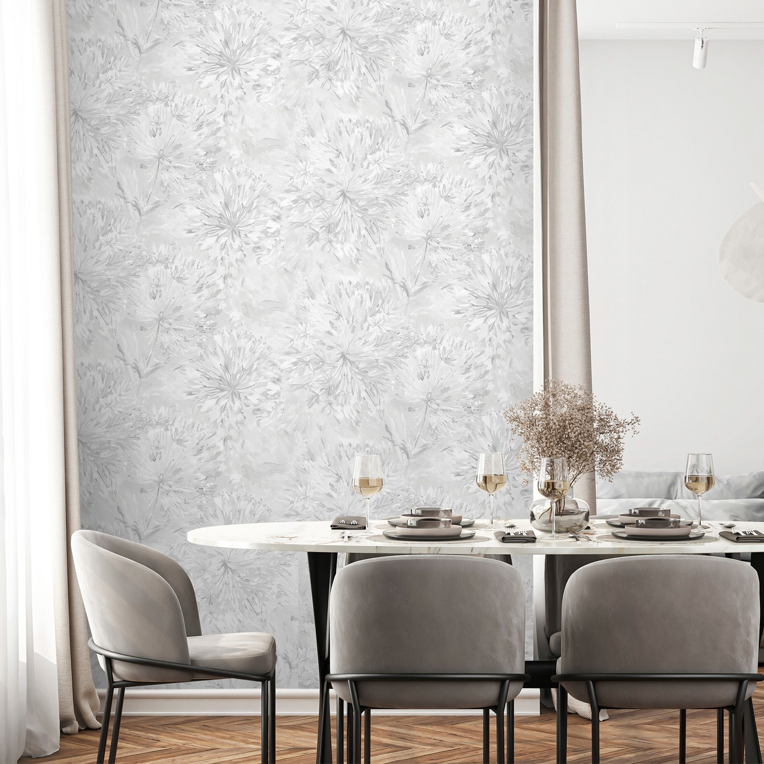рулГлавная роль в коллекции ARIA от Victoria Stenova, безусловно, принадлежит полупрозрачной ветке, выполненной слегка небрежном итальянском стиле, без строгой симметрии, присущей строгим классическим дизайнам обоев. Роскошный и ненавязчивый дизайн в жемчужной гамме смотрится очень целостно и органично в современном интерьере. Люди, выбирающие неоклассические интерьеры, характеризуются как успешные и рассудительные приверженцы традиций. Но наши обои одинаково уместны и в огромной гостиной с 3-х метровыми потолками и в маленькой спальне с потолком 2.5 метра. Мы декларируем тренд на шелковое сияние полотна, на благородные светлые переливающиеся фактуры, при производстве этой коллекции мы используем только перламутры и металлизированные краски. Сложное, многоуровневое тиснение фона словно светится изнутри, в этом проекте мы выбрали тактику максимального объединение центрального элемента и фона, уделив одинаковое внимание в проработке и использовании декоративных эффектов на всей фактуре в целом.