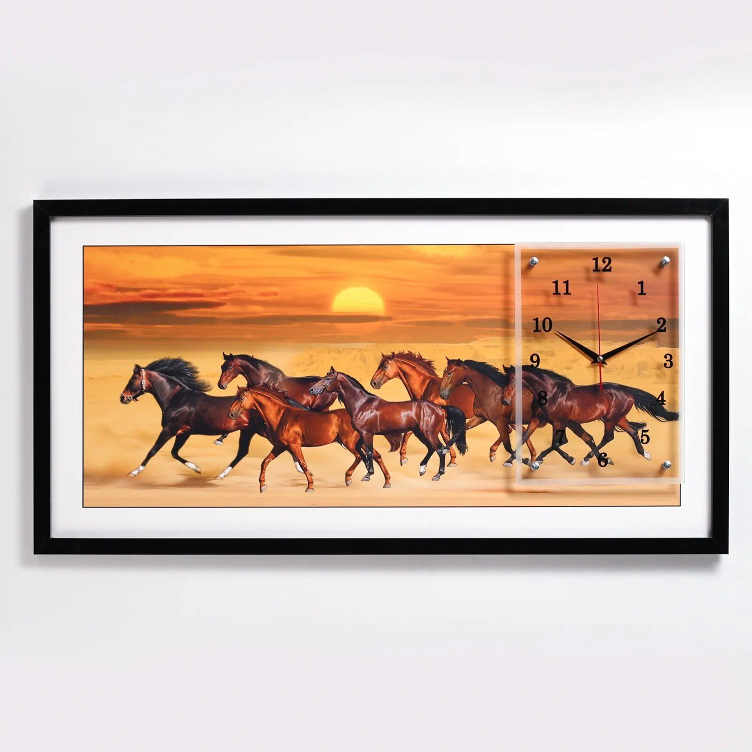 Часы-картина настенные, серия: Животные, "Стая лошадей", 50 х 100 см 9403028