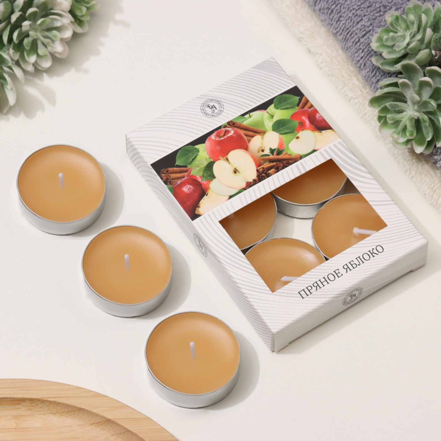 Набор чайных свечей ароматизированных "Пряное яблоко" в подарочной коробке, 6 шт 4820503