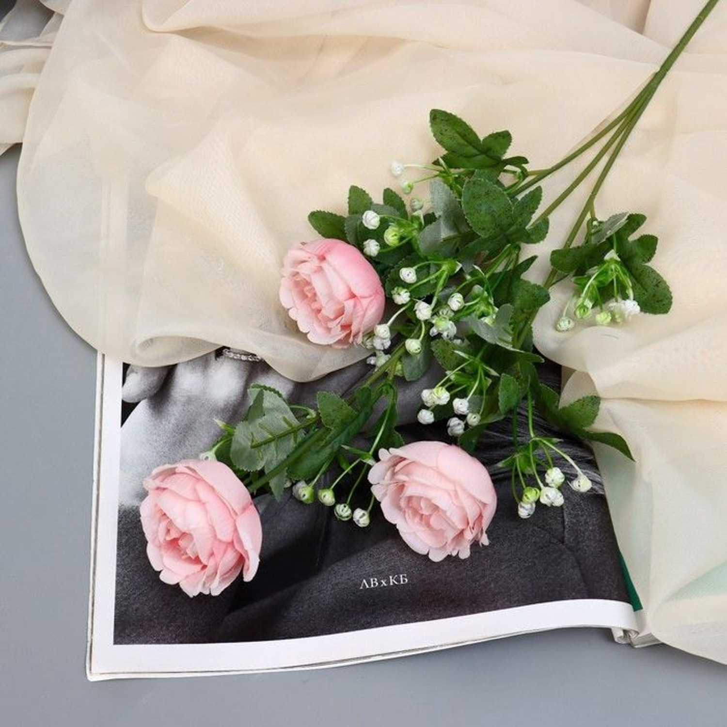 Цветы искусственные "Роза Амория" 7х62 см, светло-розовый  9222790