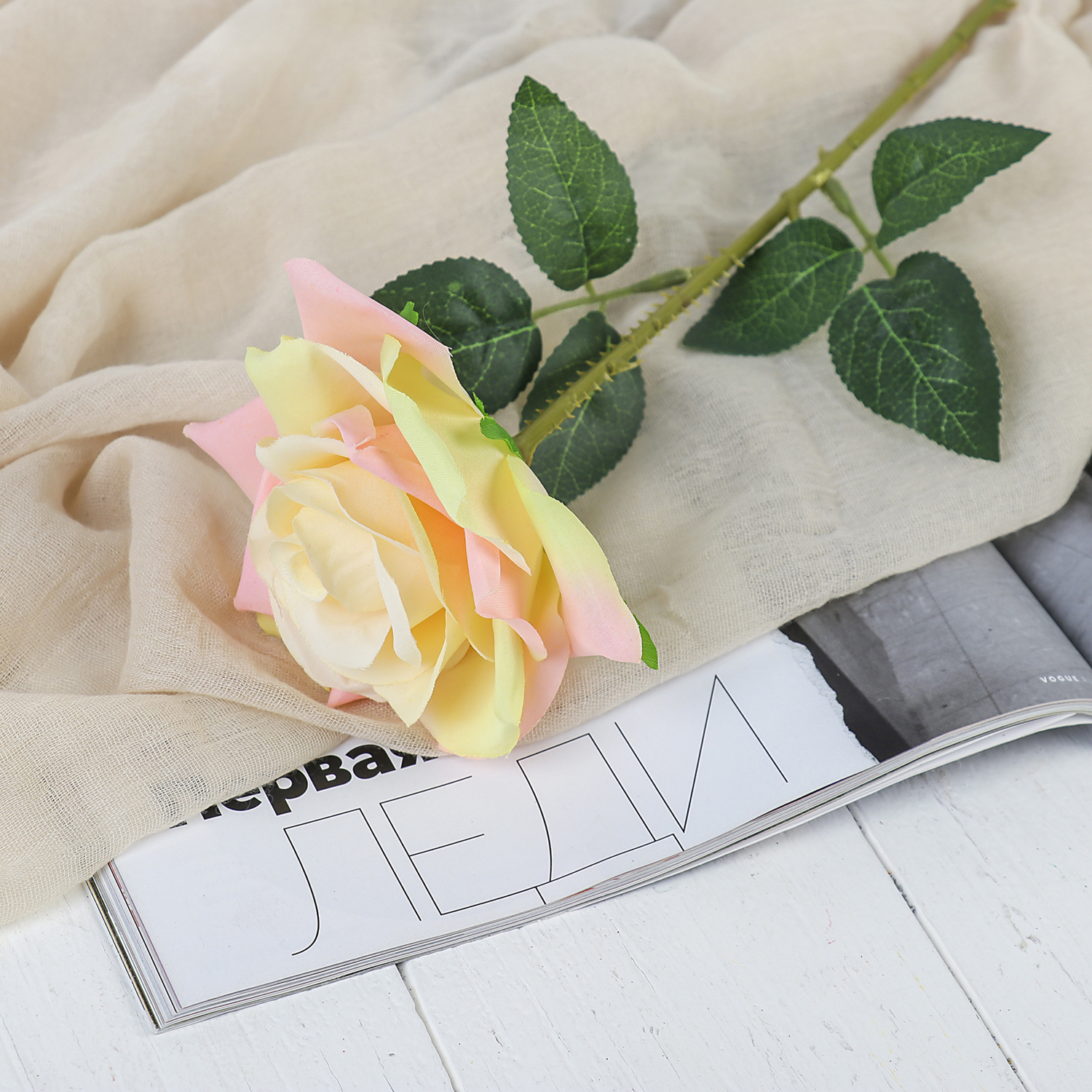Цветы искусственные "Роза Гран При" 7х46 см, кремовый 3794243