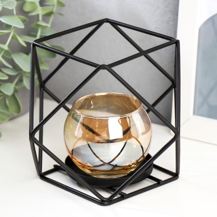 Подсвечник металл, стекло на 1 свечу "Квадраты и треугольники" 10х15х15 см   5150281