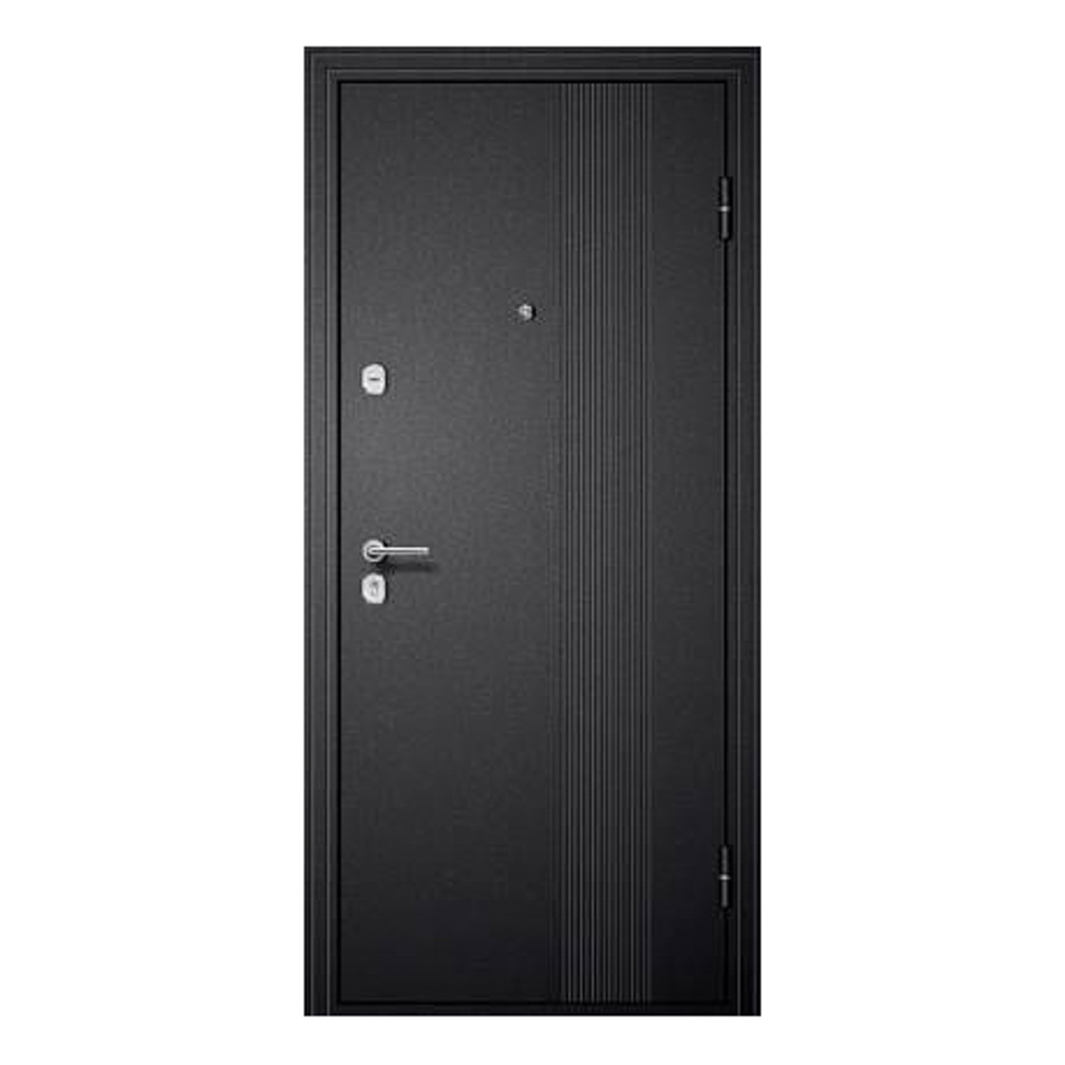 Дверное полотно, дверной короб, петли- 3 шт., противосъемные ригели - 3 шт., наличник, уплотнители -