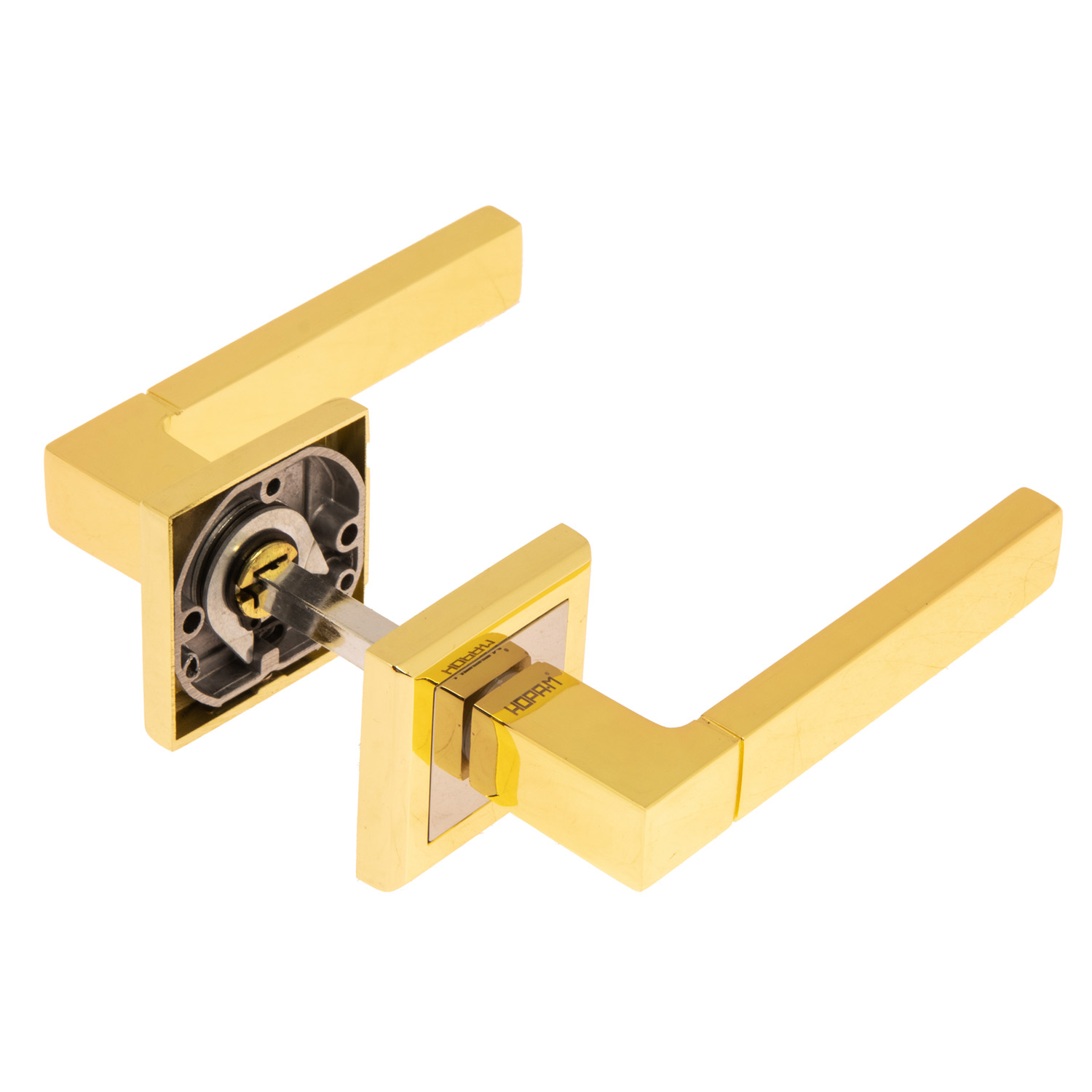 - Сталь. Из нее изготовлены комплектующие – соединительный квадрат, шурупы для установки, стяжные винты и винты для фиксации декоративной накладки на розетку, а также винты для фиксации ручки на квадрат.