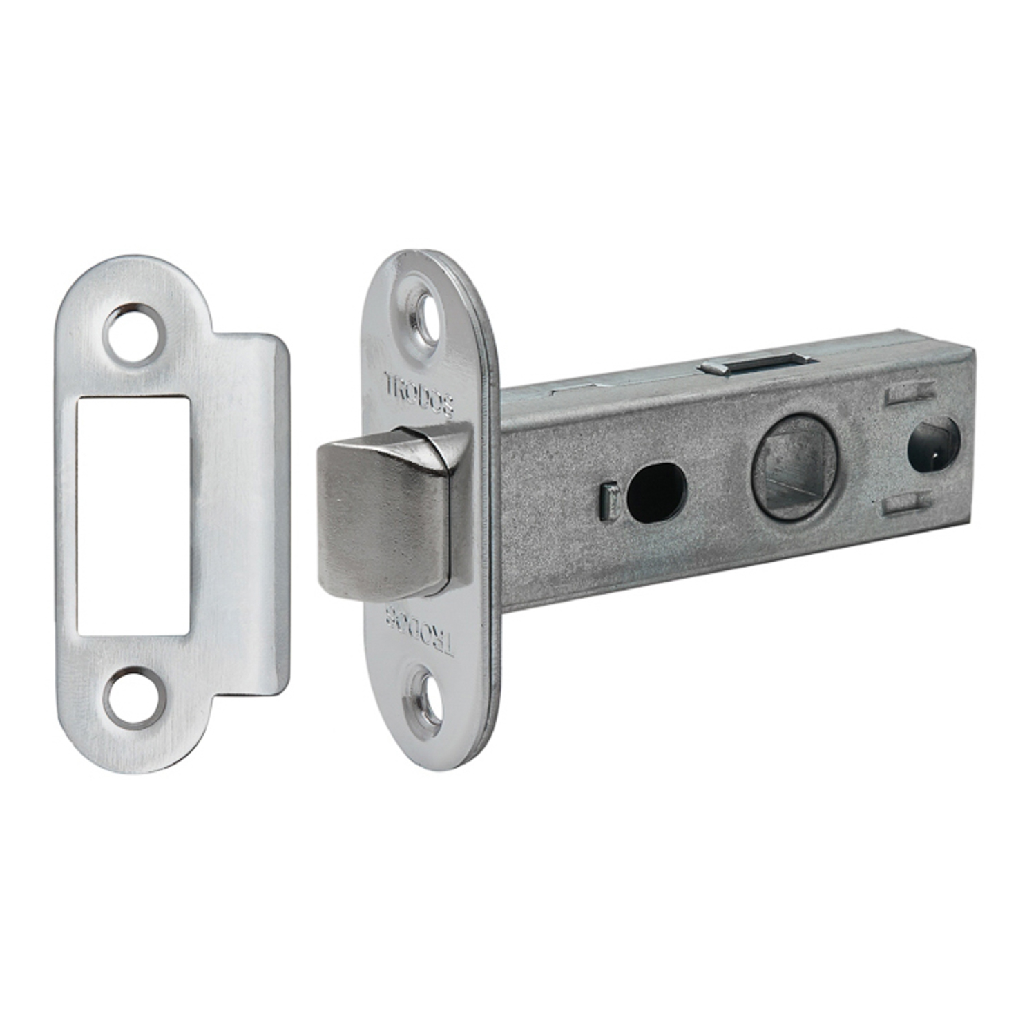 Защелка врезная п/ручку ХРОМ БЕСШУМНАЯ овальная 6-45 Trodos *1/100