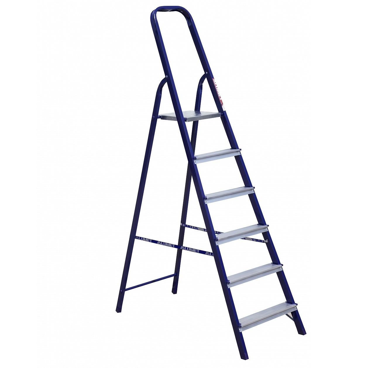 яяяСтремянка 6 ступени "Алюмет" М8406 Комбин.:стойки-сталь,ступ.-алюм. выс.верхн. пл.1,23м *1