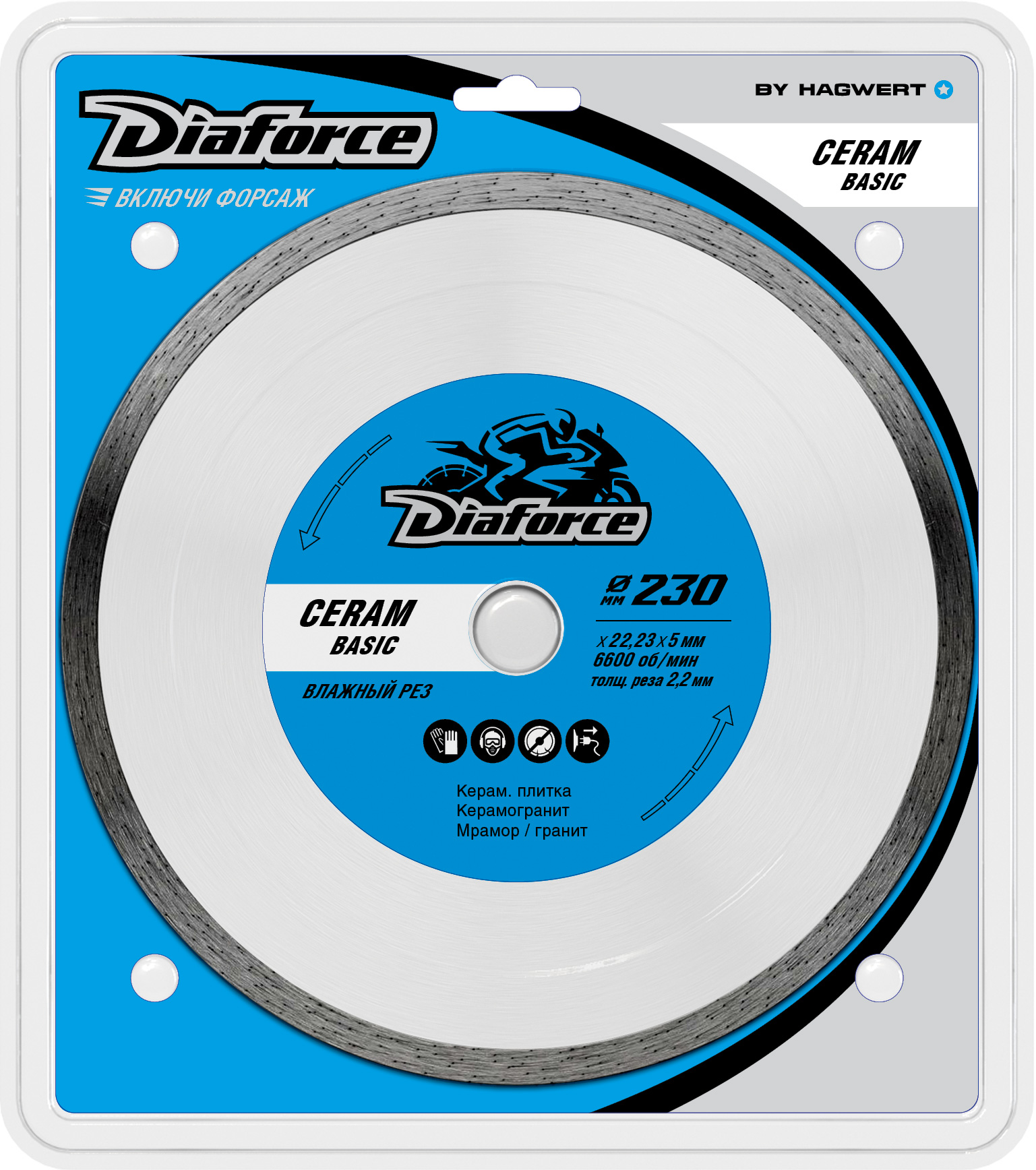 Диск алмазный 230*22,23*2,2мм по керамограниту сплошной мокр.рез арт.513230 CeramBasic Diaforce*1/10/20