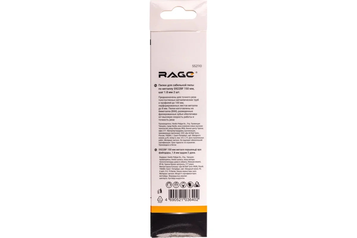 Полотно д/сабельной пилы МЕТАЛЛ 2шт 150/1,8мм прямой рез S922BF арт.552110 RAGE VIRA *10/100