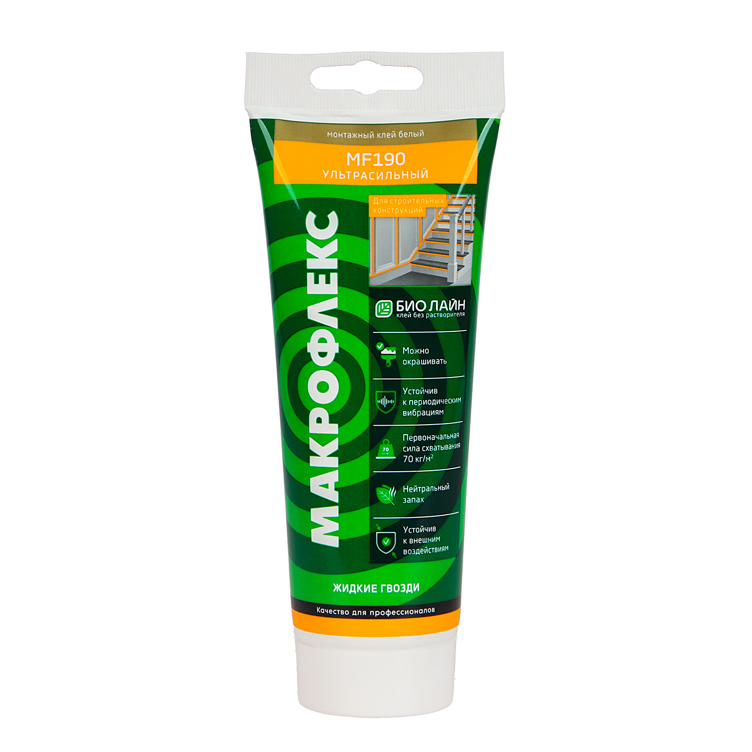 Жидкие гвозди 250 г Макрофлекс Bio Line MF190, ультрасильный, белый