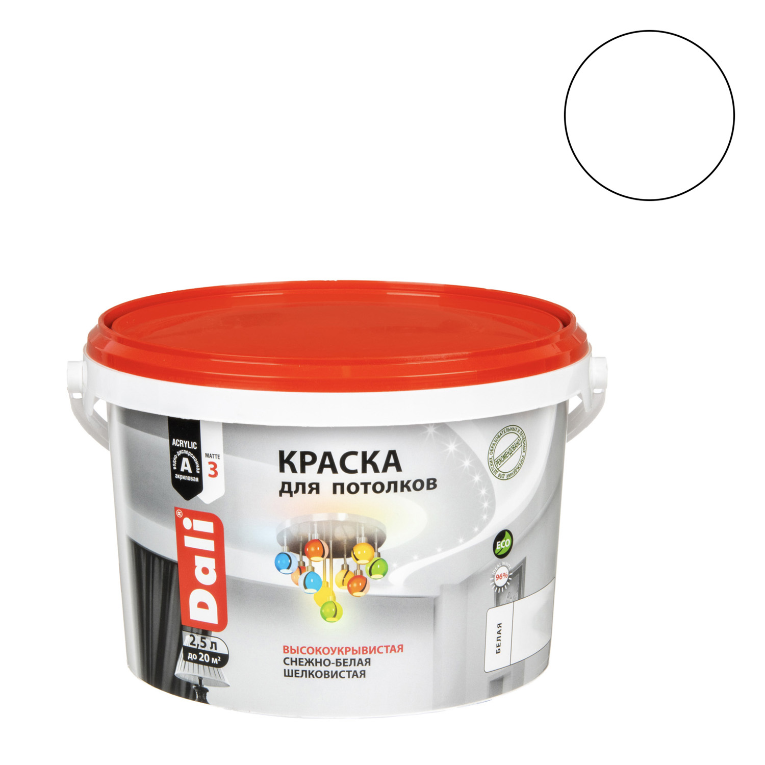 штДля окраски потолков в помещениях, не подвергающихся сильным эксплуатационным нагрузкам. Для внутренних работ. Акриловая белая матовая краска для потолков. Обладает отличной укрывистостью. Образует гладкое покрытие исключительной белизны.