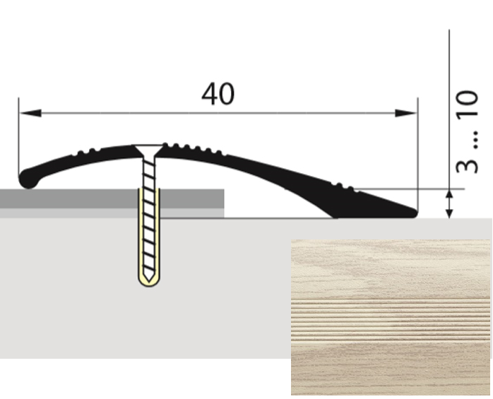Универсальный плоский профиль для стыков любых разноуровневых поверхностей с перепадом от 3 до 10 мм.