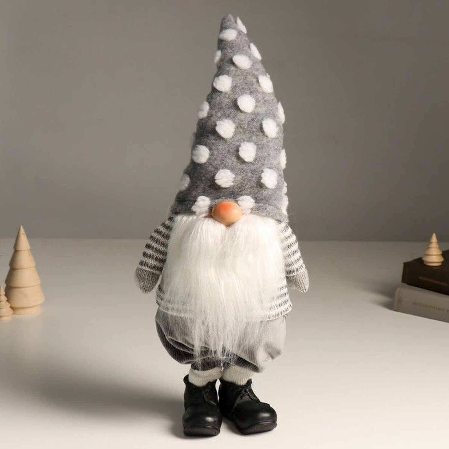 Кукла интерьерная "Дед Мороз в сером колпаке в белый горошек" 51 см 9488084