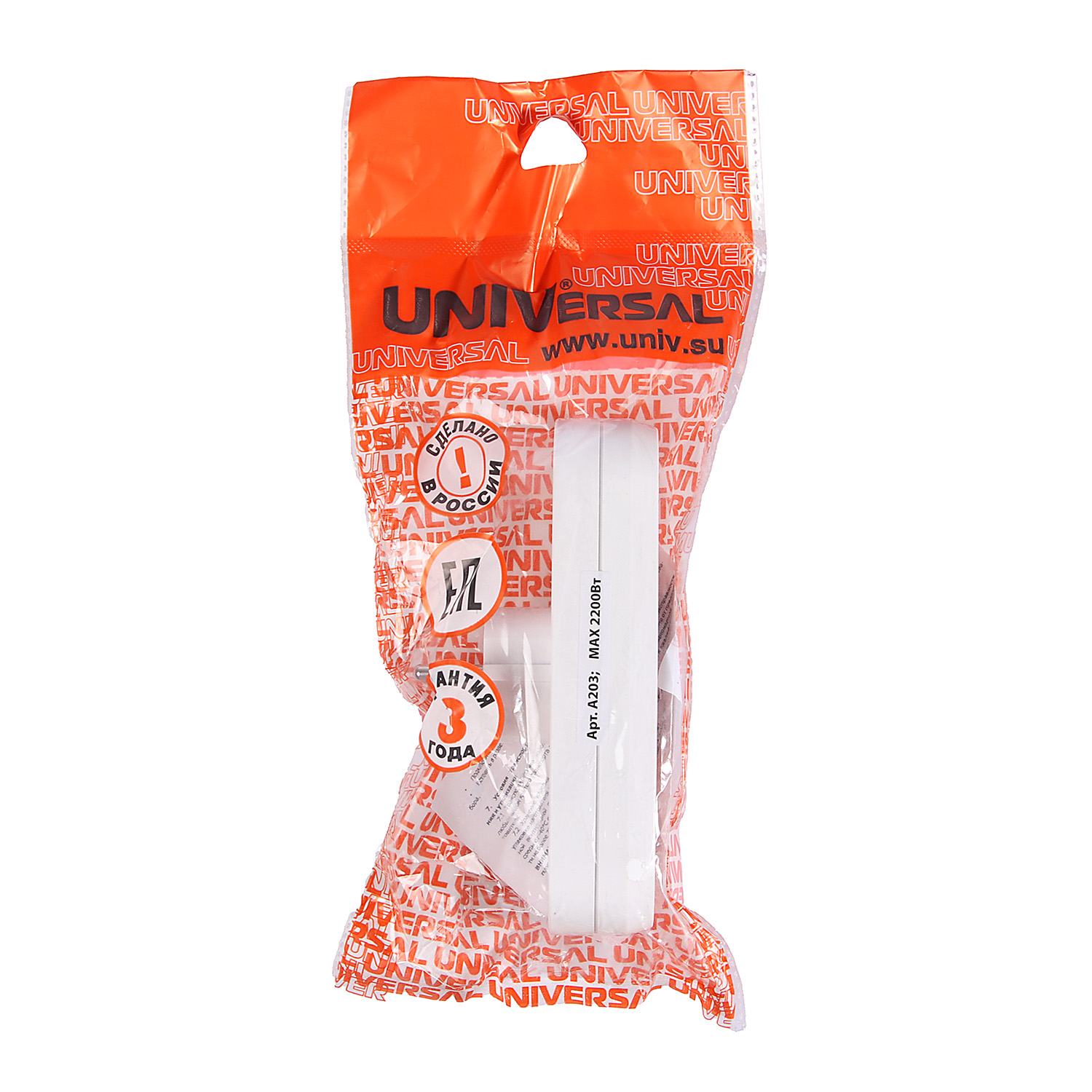 Разветвитель UNIVersal А203 - универсальное и практичное решение для эффективного использования электроэнергии. Изделие с тремя розетками, которые позволят одновременно подсоединить различные электрические устройства, обеспечивая максимальную гибкость в использовании.