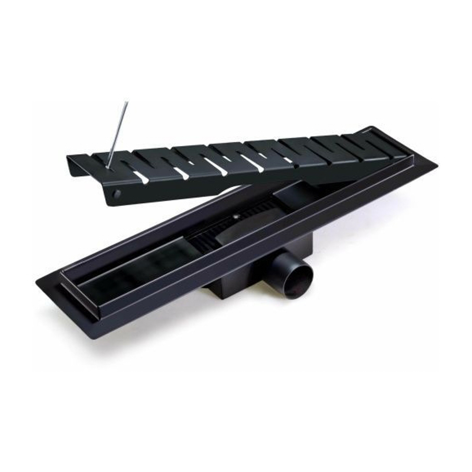 Желоб 600х70 мм, гориз. выпуск, сухой затвор TIM BAD466002BK черный мат. (1/4)