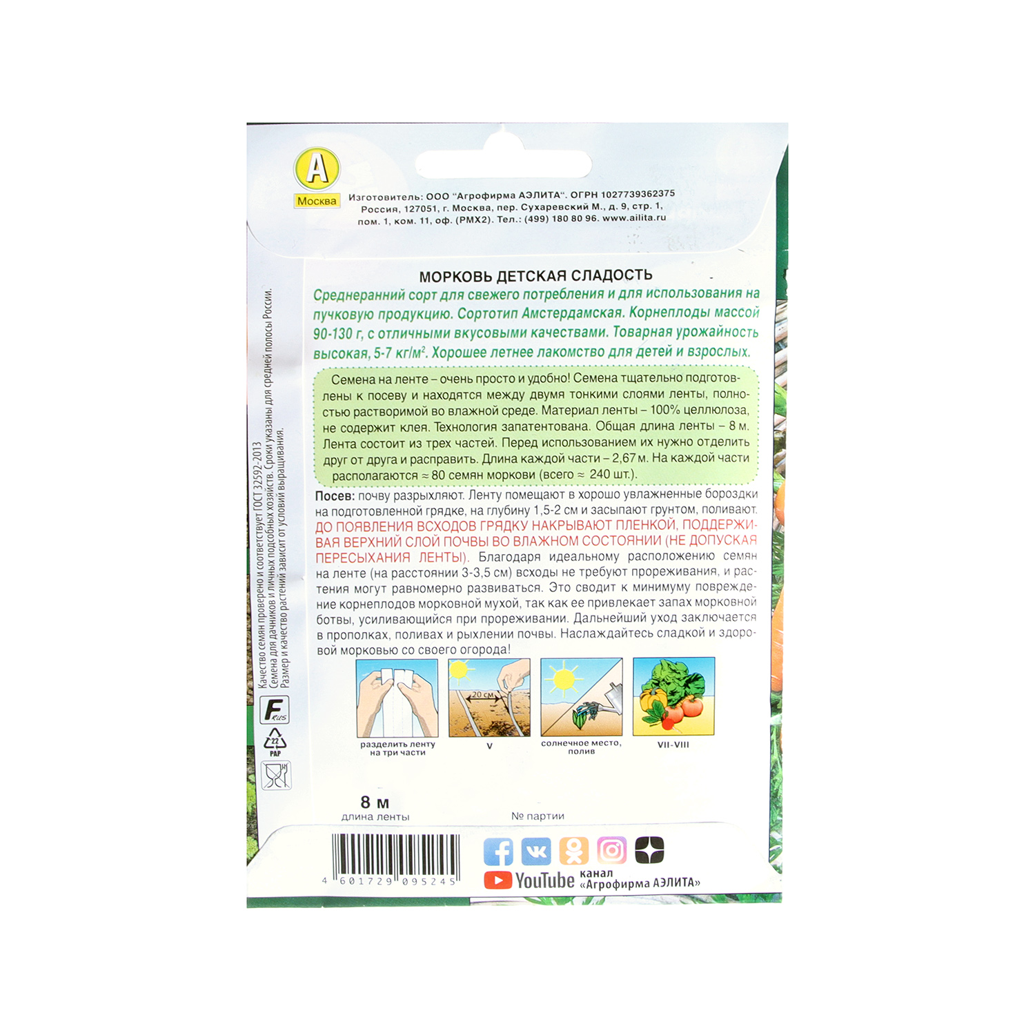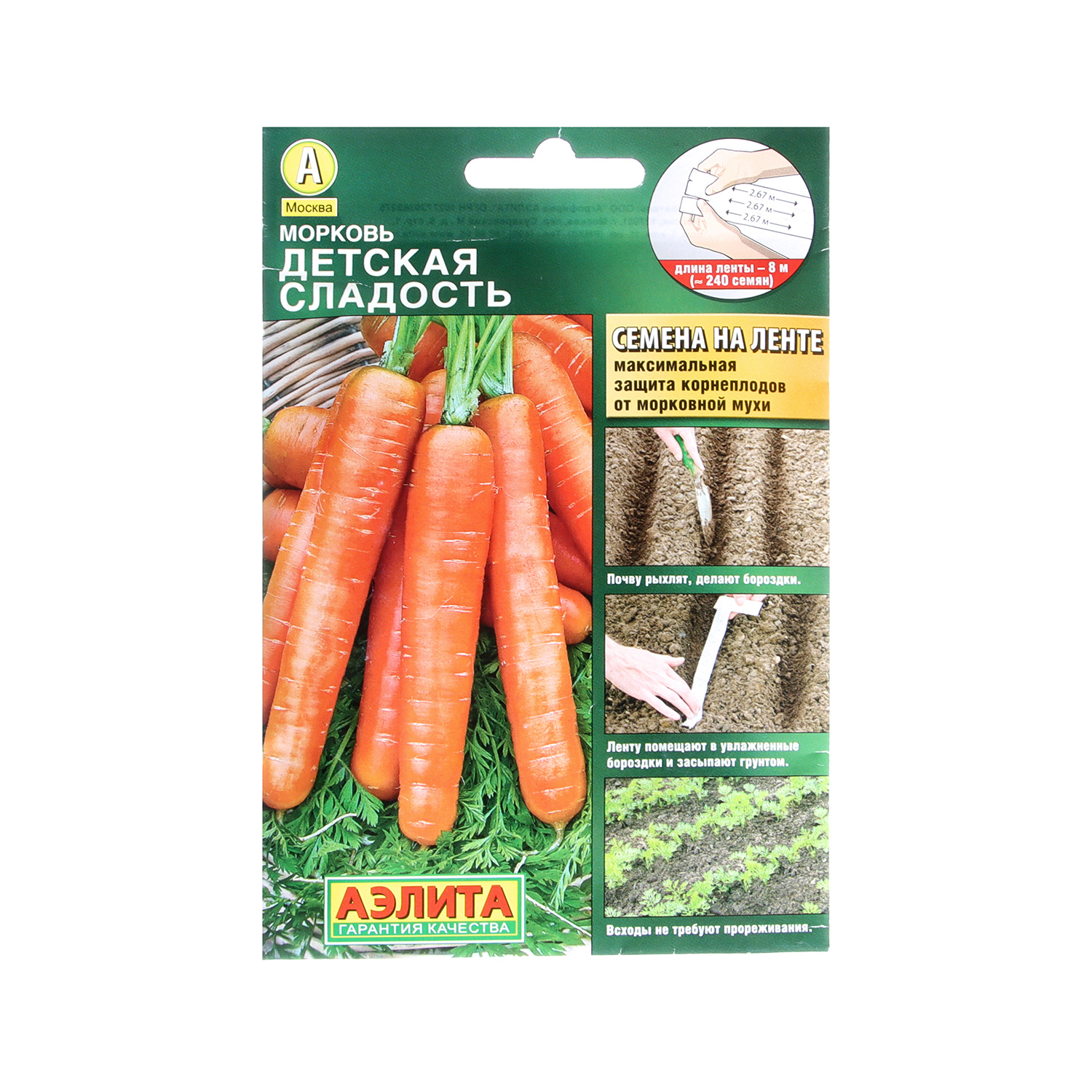 Семена Морковь Детская сладость 8м ЛЕНТА Аэлита *10/500