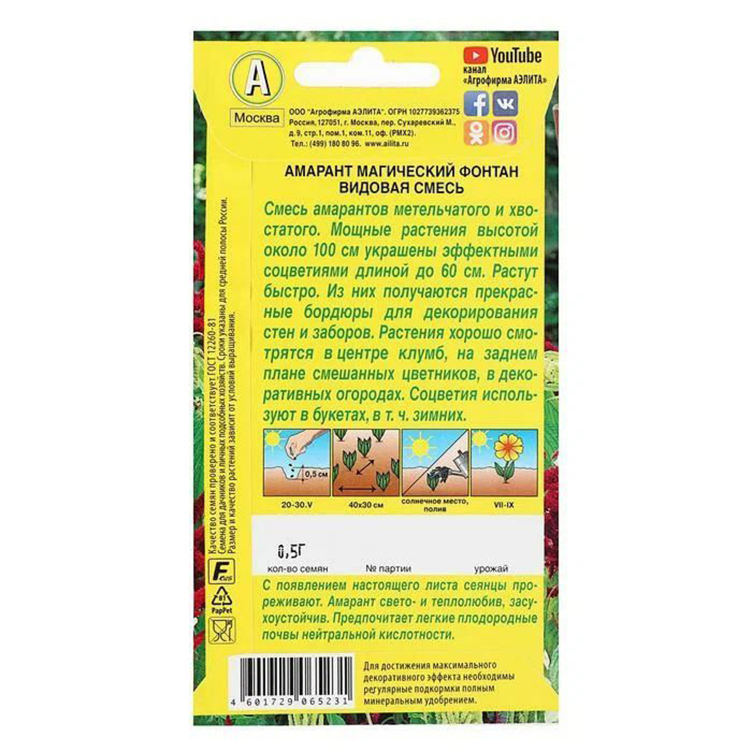 Семена Амарант Магический фонтан 0,5гр Аэлита цв *10/200