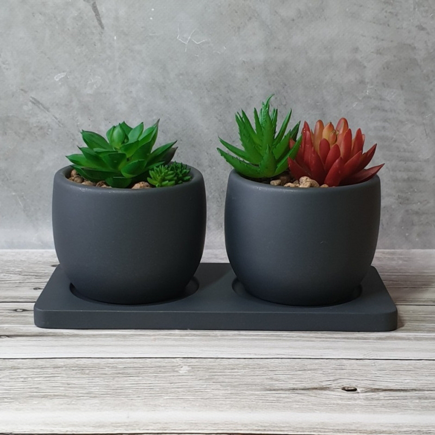 Кашпо гипсовое "Лотос" НАБОР 2х0,3л с поддоном Антрацит металлик ("VipSet") *2
