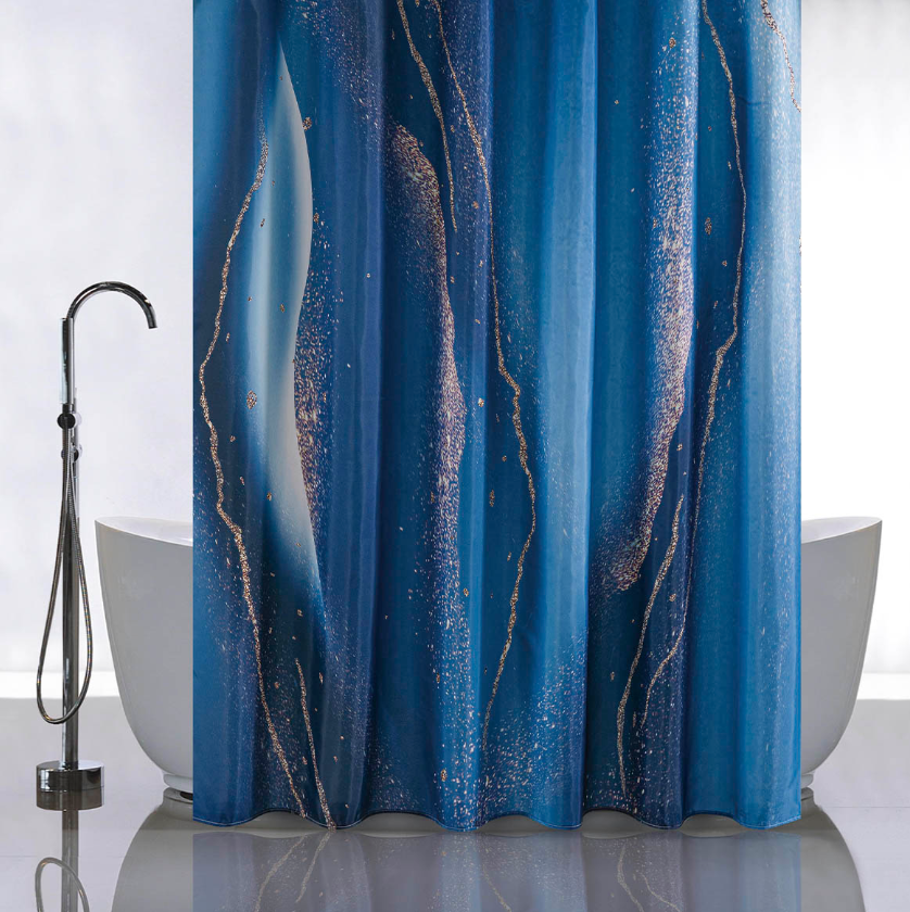 Штора для ванной "Санакс" п/эстер 180*180см "Синие разводы" без колец 01-92 *1/24