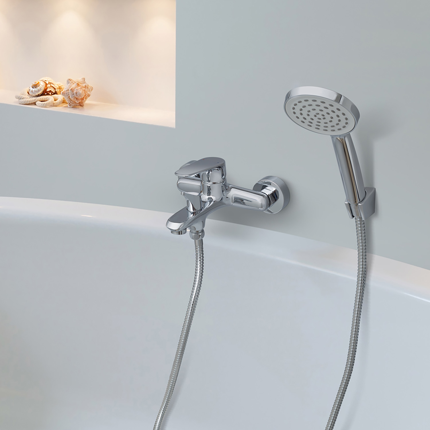 Смеситель, лейка D-10 см, шланг 1.5 м, кронштейн, эксцентрики, паспорт/гарнатийный талон |