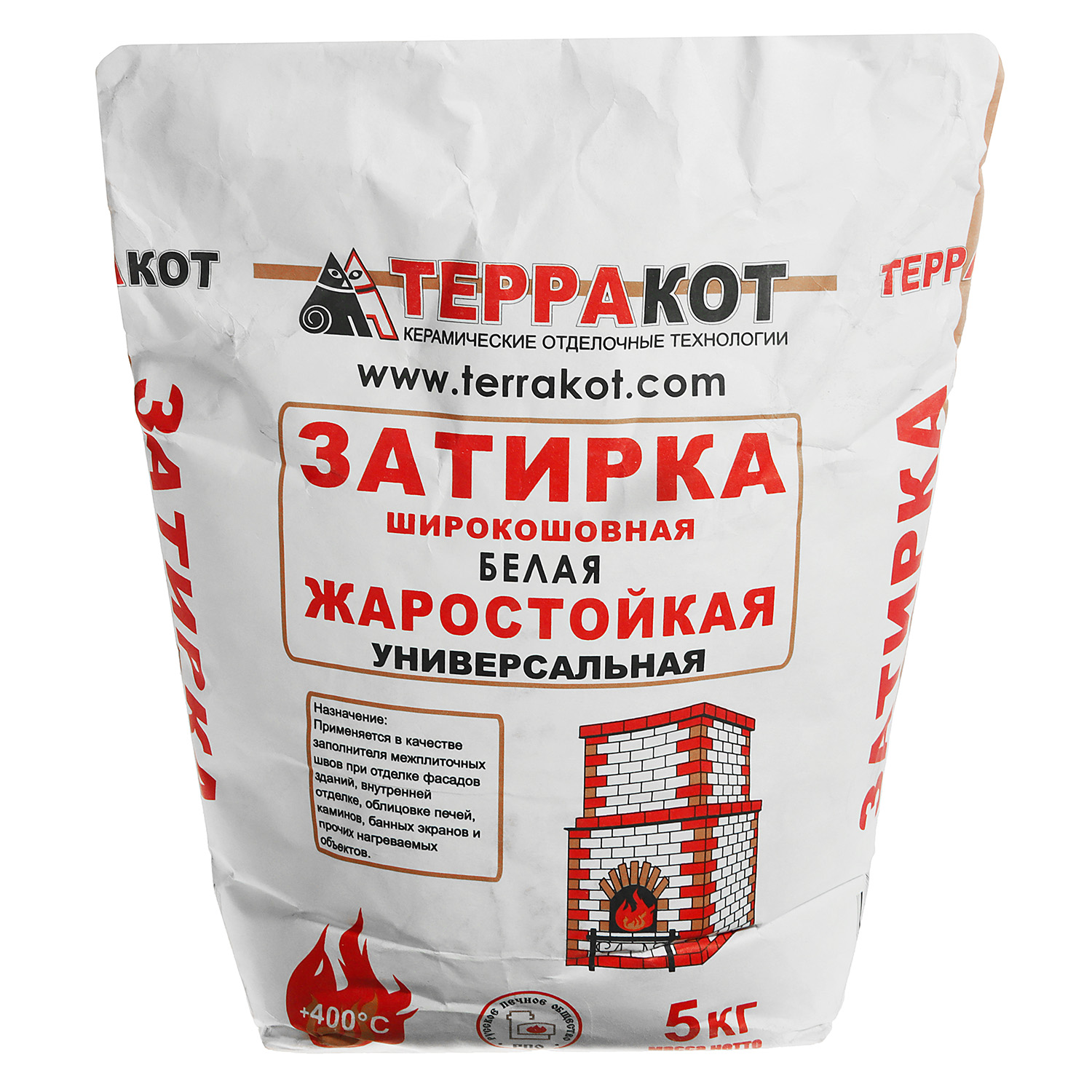 Затирка жаростойкая Терракот — экологически чистая, высокопластичная сухая смесь. Сохраняет свои свойства при нагреве до +400 °C. Обладает высокой силой сцепления с поверхностью. При соблюдении рекомендаций по затворению не сползает с вертикальных поверхностей. Не растрескивается при широкошовном заполнении. Устойчива к воздействию влаги.