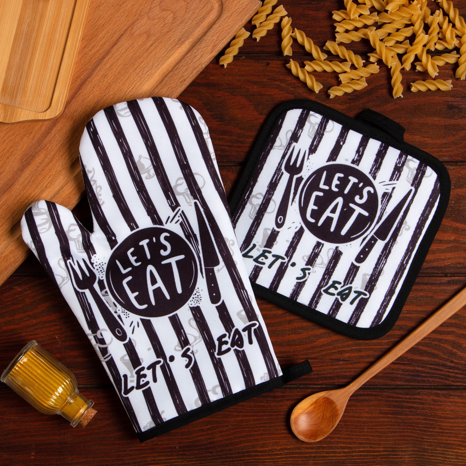 Набор прихваток Eat  варежка-прихватка 25х16см, прихватка 17х17см, 100% полиэстер Доляна *1