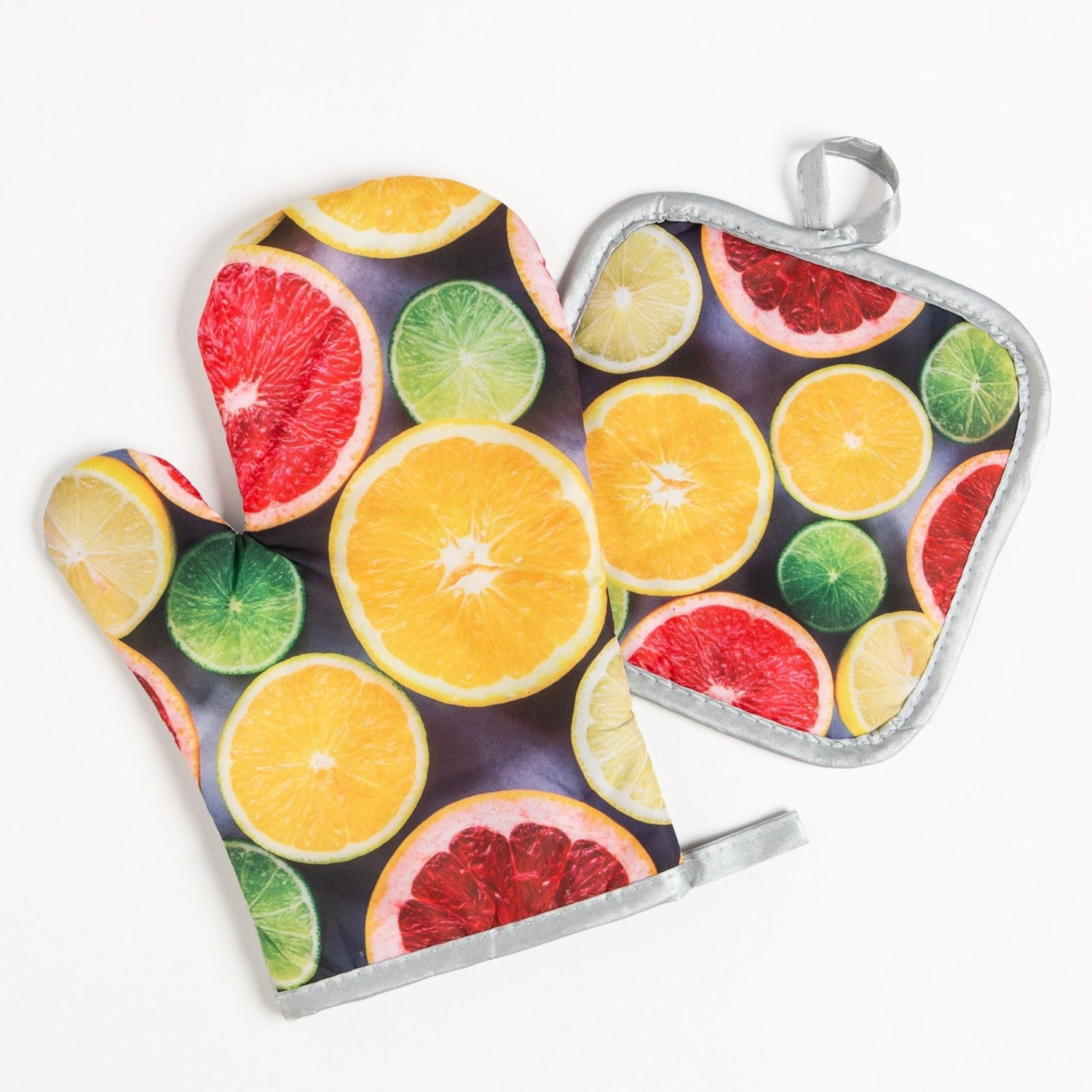 Набор прихваток Цитрусовые варежка-прихватка 26х16см, прихватка 17х17см 100% полиэстер Доляна *1