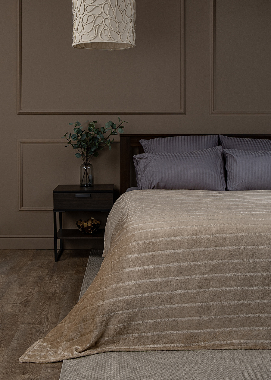 Плед 200*220см фланель однотонный страйп серо-бежевый TF FNS BE-GY1 2022 16-1320 Absolute *1