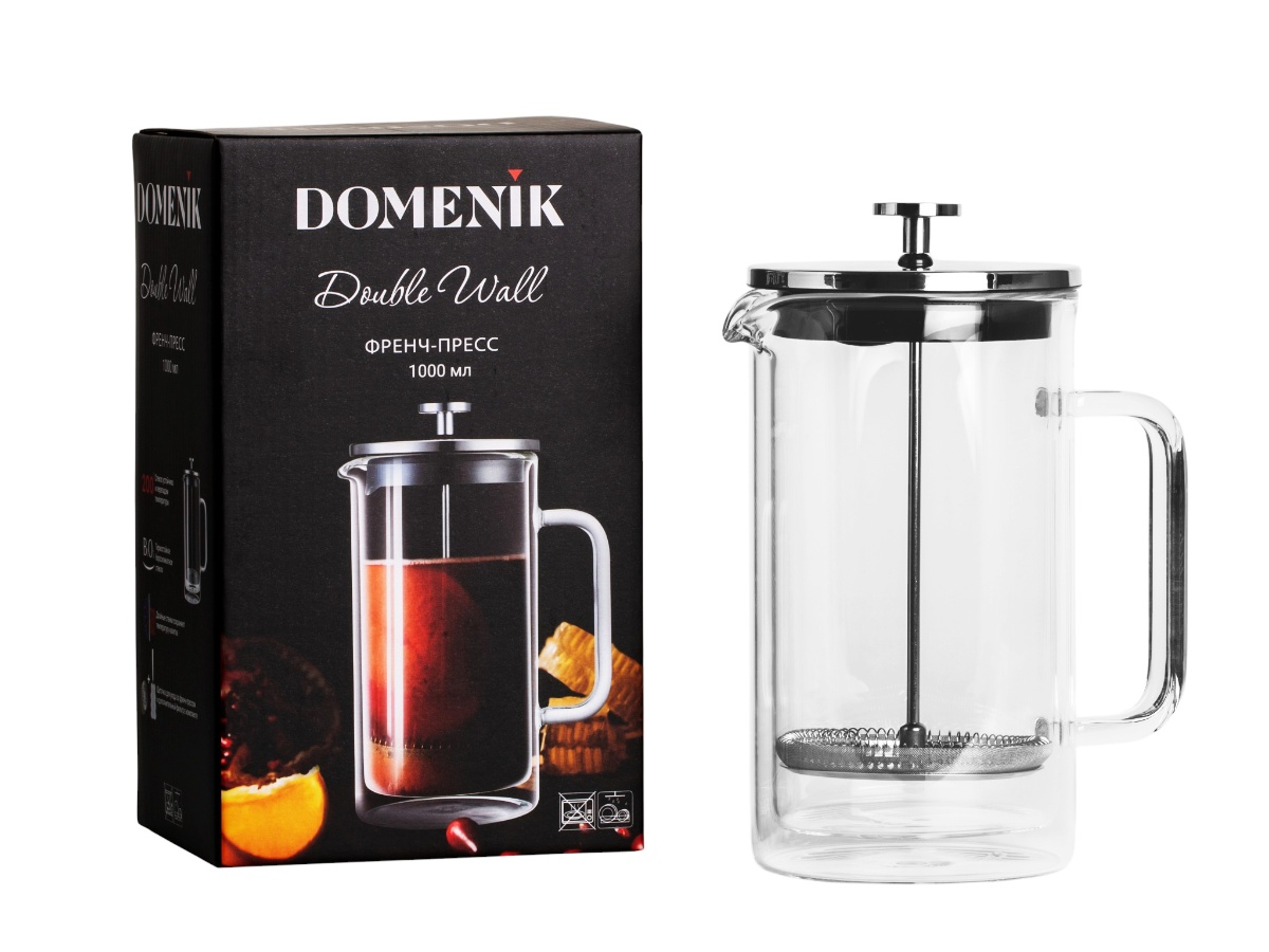 Чайник заварочный "френч-пресс" жаропрочное стекло "Double wallL" 1000мл DMG037 "Domenik" *1/4/24