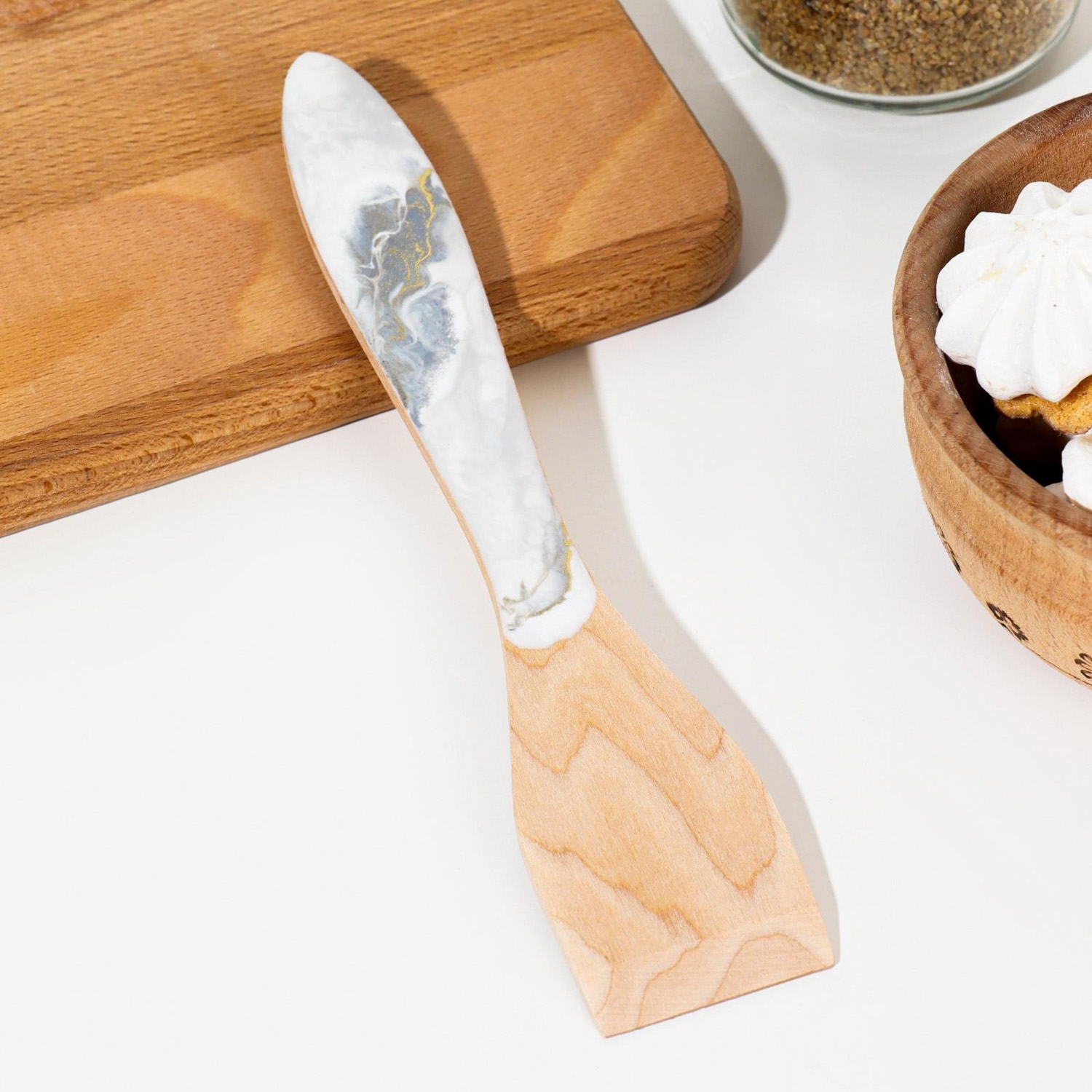 яяяЛопатка деревянная "Мрамор №1" 21х4,5х0,4 см береза, эпоксидная смола 7338869