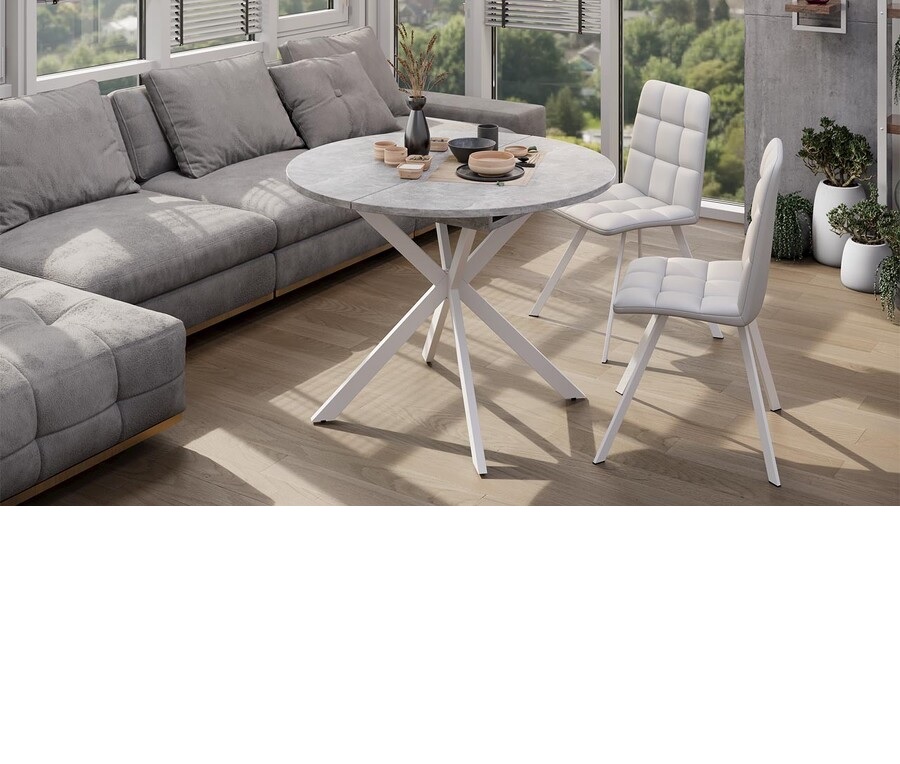 Стол обеденный круглый раздв.Мэдисон d1000(+315)мм h750мм Ателье светлый/белый муар ТриЯ*1