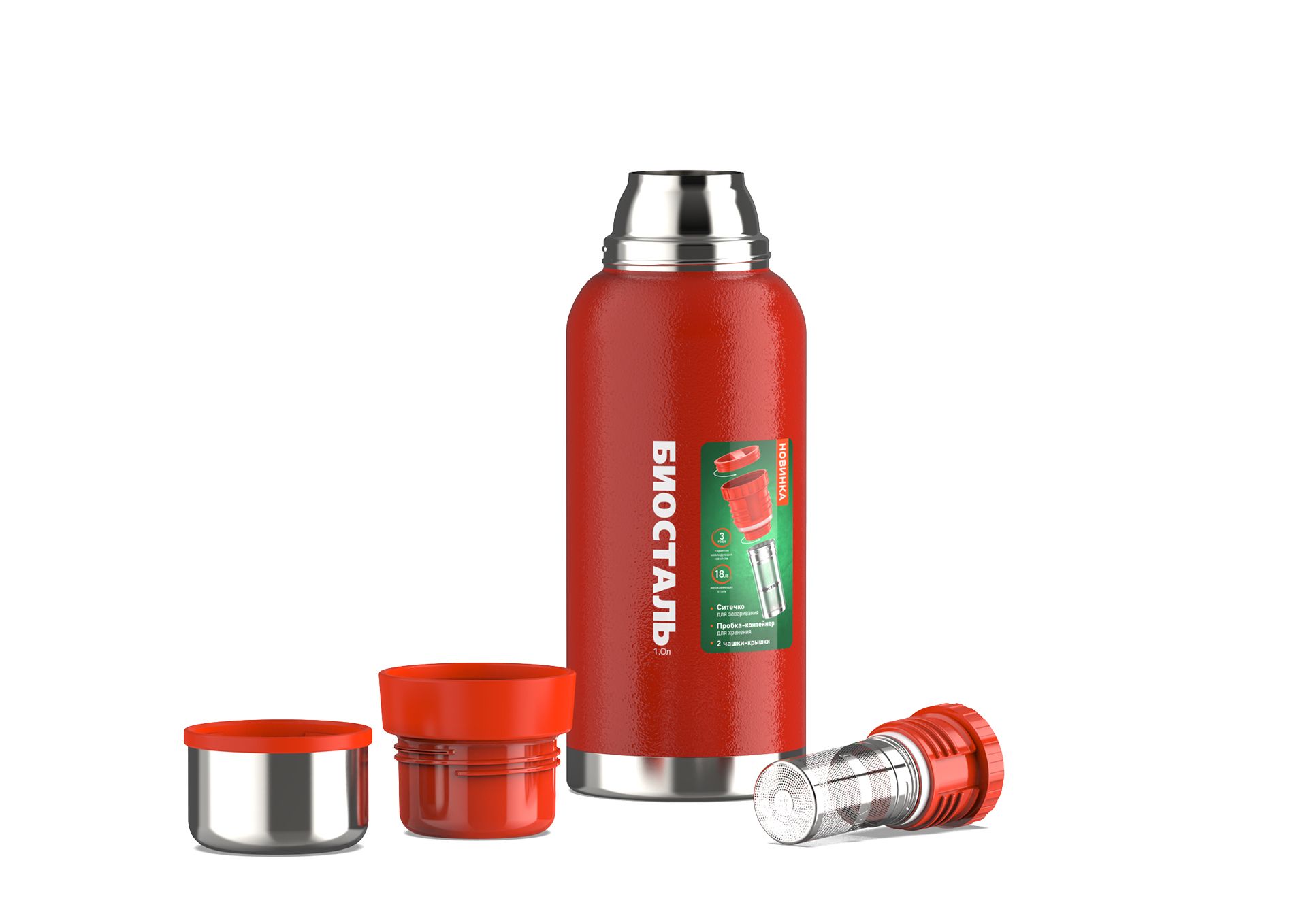 яяяТермос нерж."Биосталь" 1,0л Узк.горло,со вставкой-Ситом д/Завар.+крышка-конт.NBR-1000Z-R *1/12
