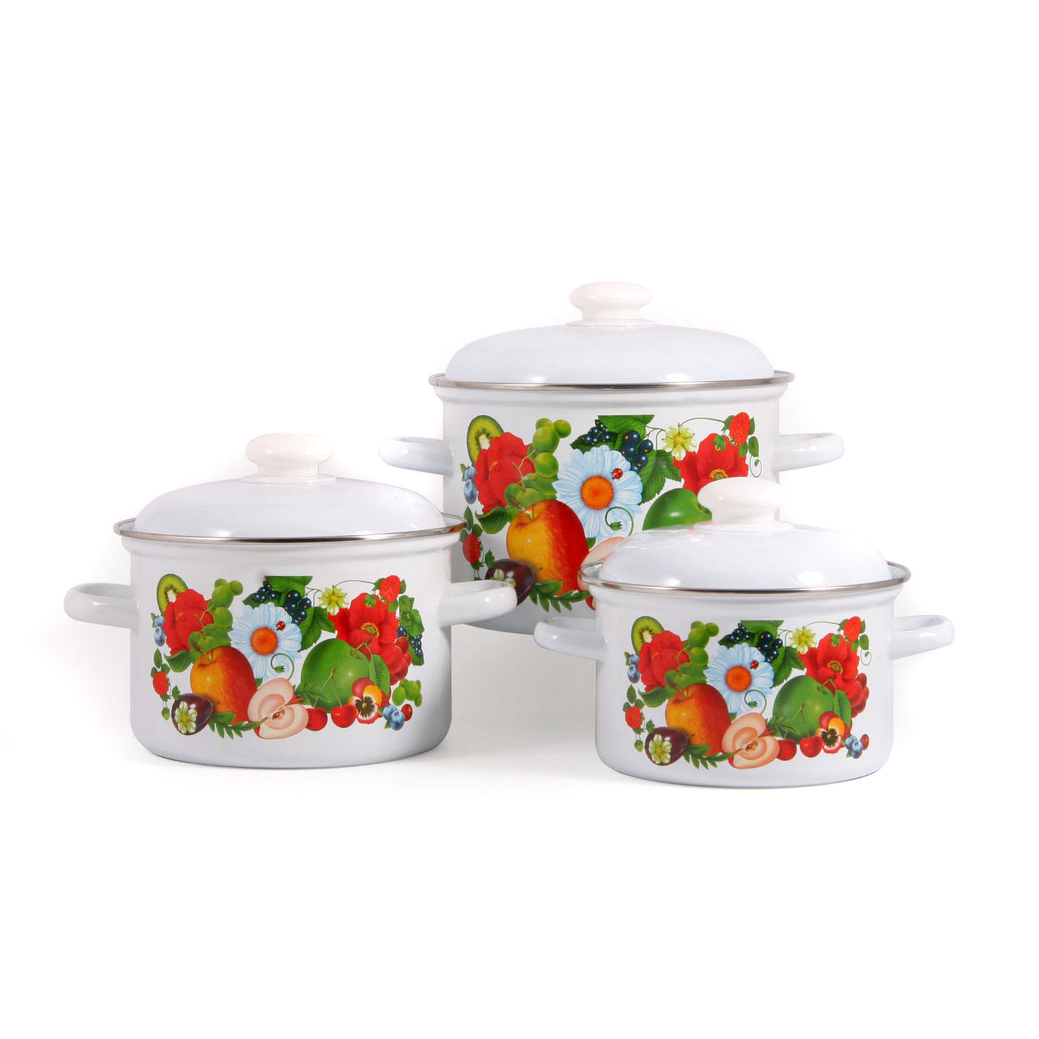 яяяНабор кастрюль эмалированных: 2,0л+3,0л+4,5л рис. "Фруктовый микс" С-007АП2/4 "Лысьвенс ЭМАЛИ" 1