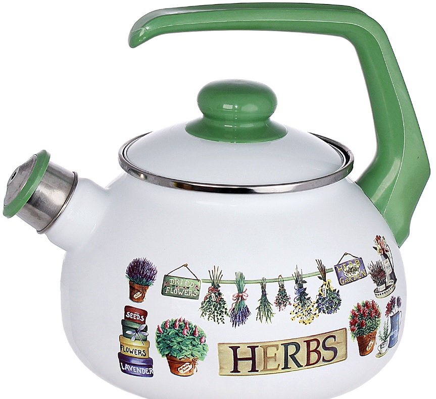 яяяЧайник эмалир.со свистком 2,5л "Травы" 2594 (Сербия) *1/6