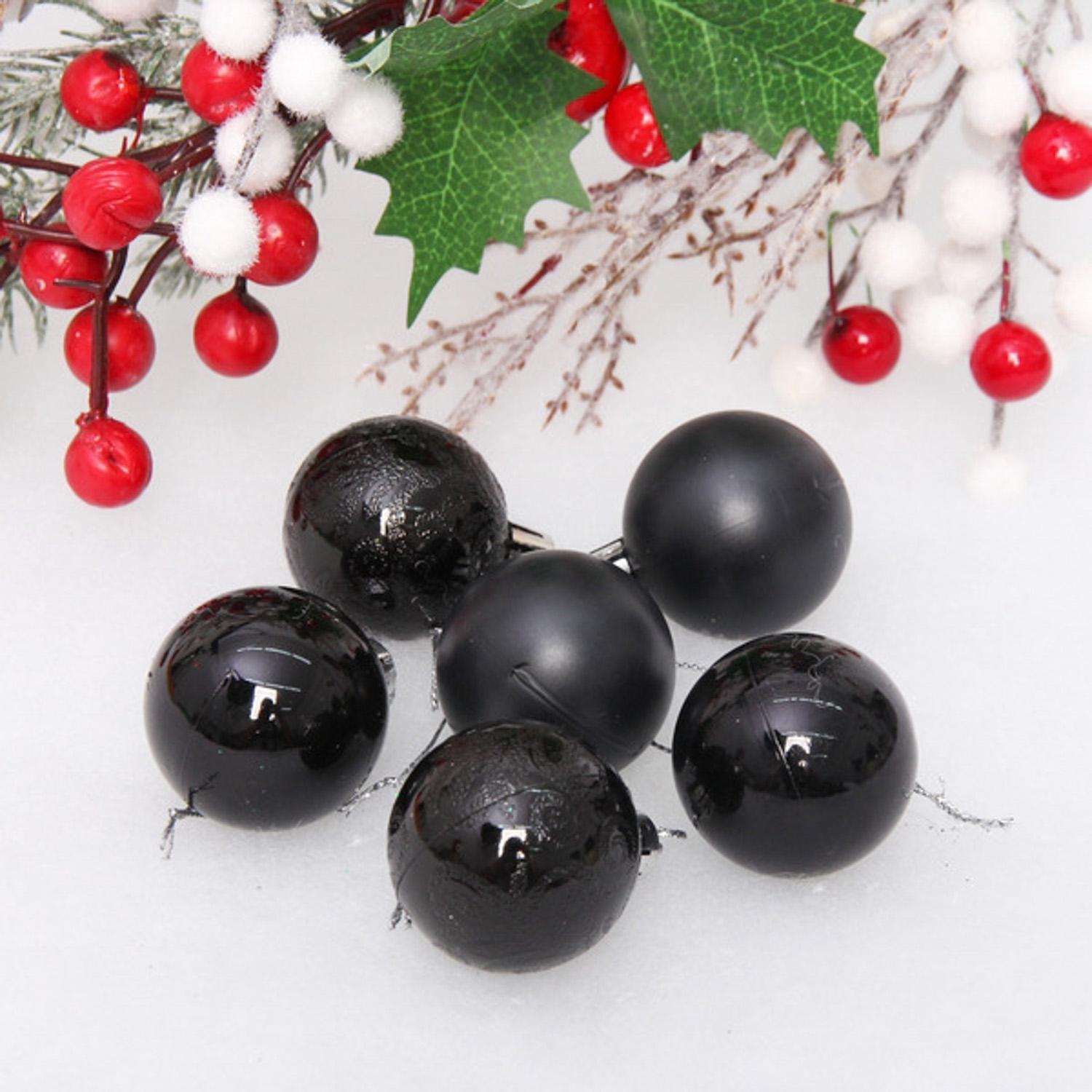 Новогодние шары 4 см (набор 6 шт) "Микс фактур", черный