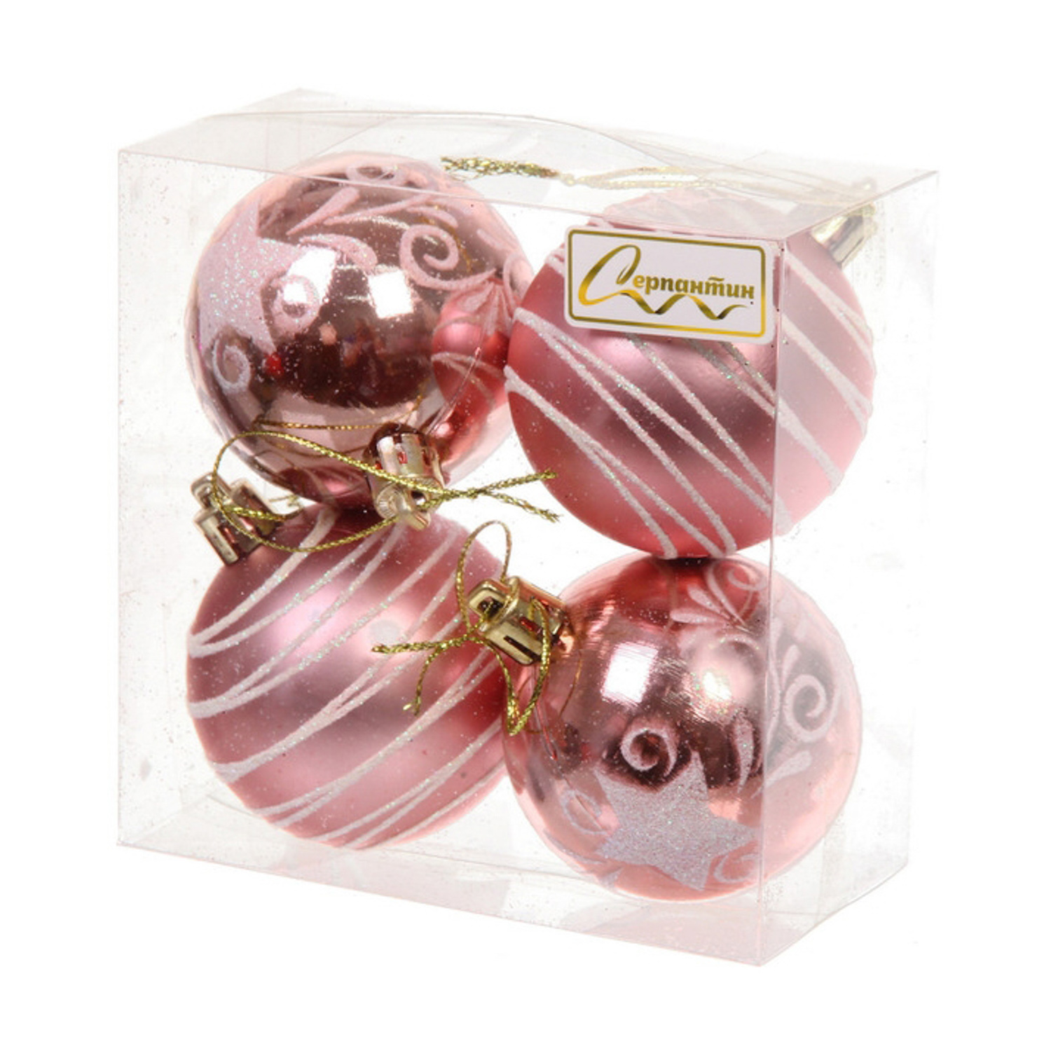 Новогодние шары 6 см (набор 4 шт) "Снежная дымка", Розовое золото