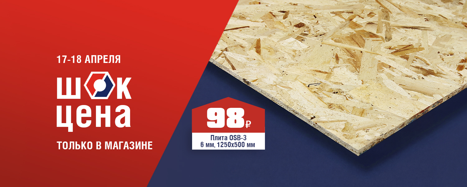 Плита OSB толщиной 6 мм — один лист на десяток задач! Не боится воды, держит форму, легко монтируется. Подходит для стен, полов, кровли, опалубки — идеальный выбор для надёжного ремонта. 17 и 18 апреля в розничных магазинах ДомоСтрой не пропустите ШОК-цену: